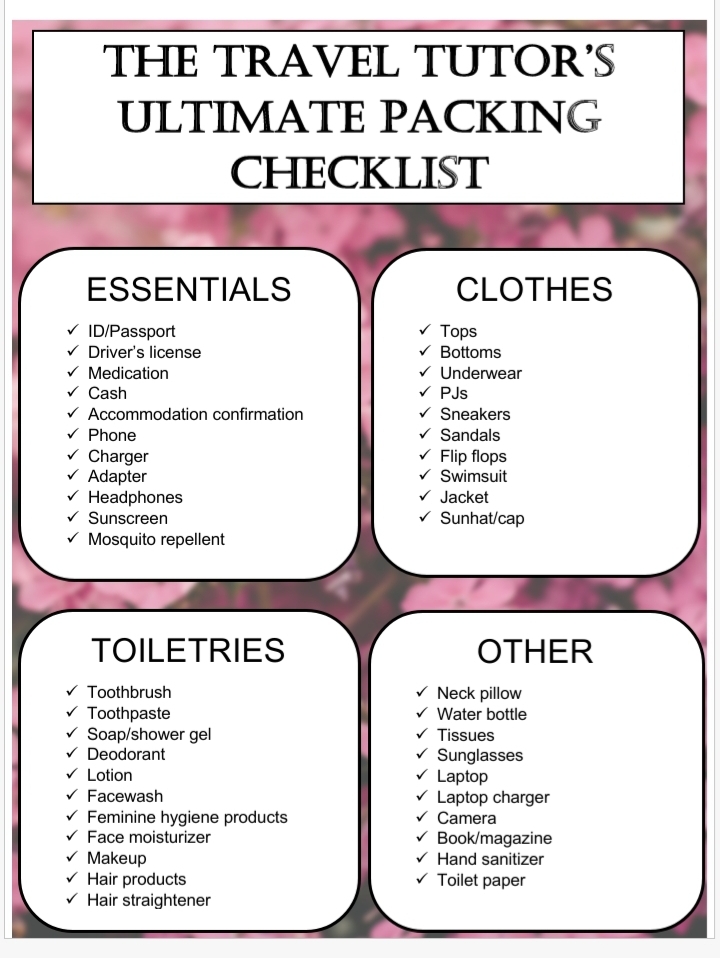 I don’t know about you, but the thought of packing drains the life out of me which 10 out of 10 times leaves me packing the day before and worse, forgetting essential items. Creating a simple checklist for myself has made the process much bearable and I’m here to share it with you together with some packing hacks that have made life a lot easier.
